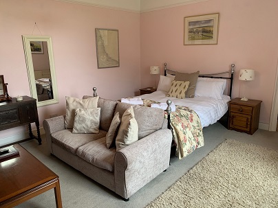 Suzie has twin beds and can be used in conjunction with Rose as a Friends & Family suite. Rose is across the landing so families can enjoy separate bedrooms while sharing the bathroom. Suzie can also be booked separately as a twin room with its own exclusive private bathroom when Rose is not occupied.