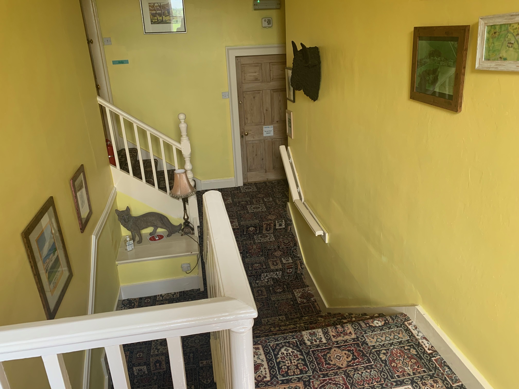 Rose is a double room facing south over the garden and fields towards Howick Woods. Rose’s own exclusive bathroom is along the landing and has both a big bath and a separate shower. Access to the bathroom is down and up two flights of stairs and is not suitable for those with mobility issues.